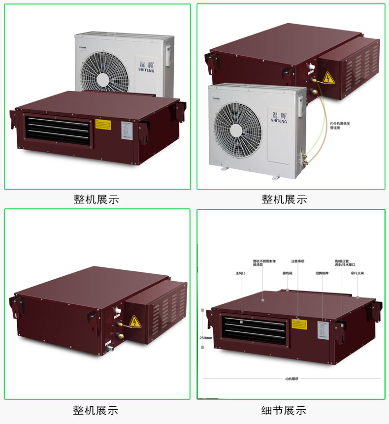 5、功能=制冷+制热+除湿+加湿:本机具有制冷、制热、除湿、加湿功能,用户可根据需要选择需要的功能,这样既能满足温湿度的要求,又能达到节能的效果。