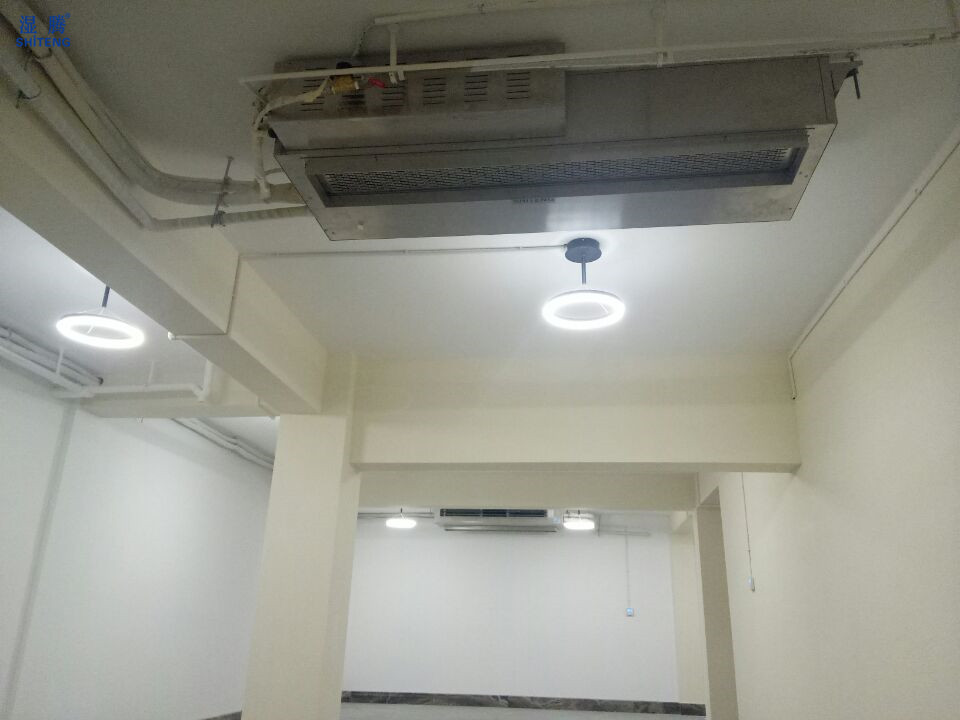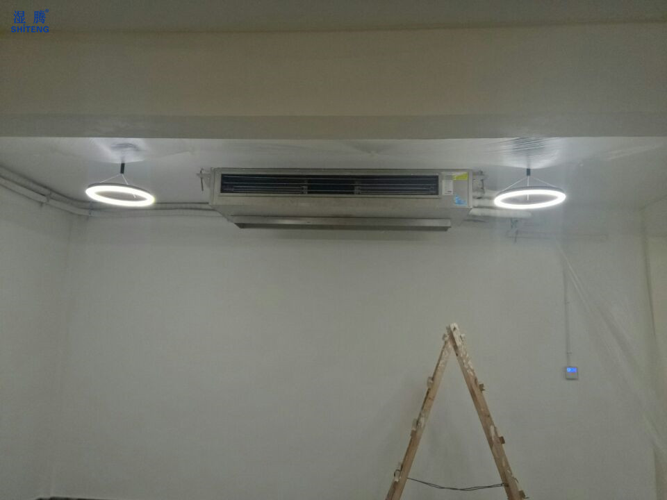 ④加湿原理:机器温湿度传感器监测到房间湿度低于设置湿度5%时,主机控制器给加湿器信号工作,通过风机送入空调房间,达到加湿目的。