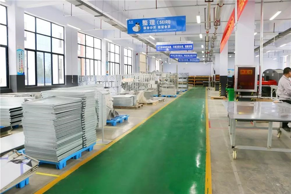 湿腾电器自2007年在上海成立以来,就在飞速发展,一直领跑行业,为了确保产品品质,公司坚持关键零部件的自制。2013年率先投入钣金车间,当时在温湿度行业内的状况是十几个除湿机厂家到同一个钣金工厂加工,而湿腾是行业唯一一家有自己钣金车间的,现在湿腾山东工厂的钣金车间拥有自动剪板机、数控冲床、激光切割机、数控折弯机等设备,所有机器选用的都是精密度最高的国内高精尖的设备;湿腾山东工厂新增加了全自动喷涂烤漆设备,解决了喷涂的瓶颈;为了缩短生产周期,提高生产效率增加了换热器车间,车间内用的是国内最好的换热器的设备;车间的全自动抽真空加液机也是采用最先进的设备,速度快、精度高,保证加到每台机器里面的制冷剂误差不低于5g。湿腾一直在精益求精的提高生产工艺和产品品质。今天小编为大家带来的是原材料加工车间及原材料仓库的展示。