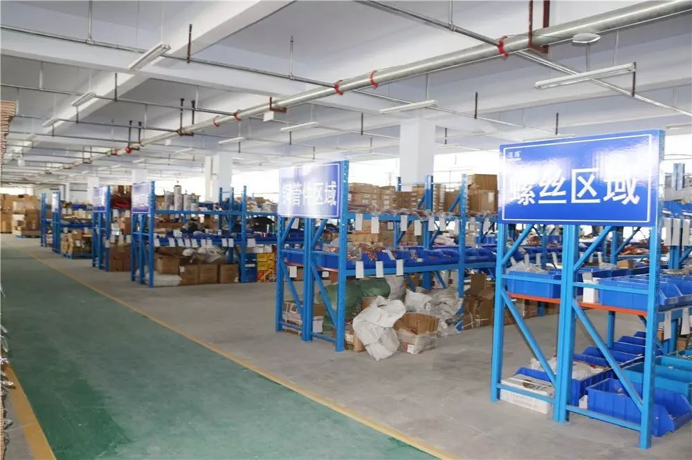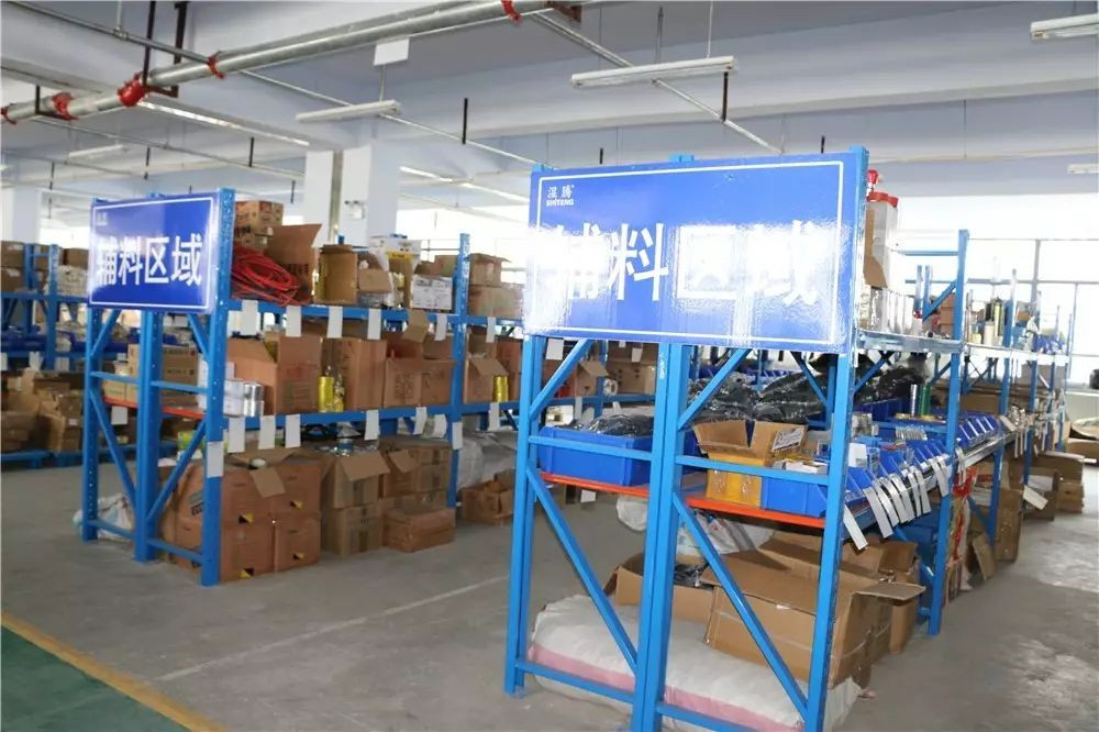 原材料仓库按照不同类别并结合物料特性按区、按排、按位定位存放。各材料摆放整齐,仓库干净整洁。
