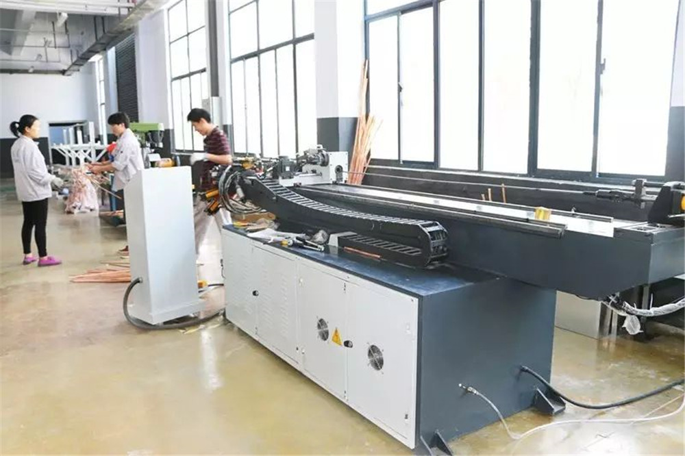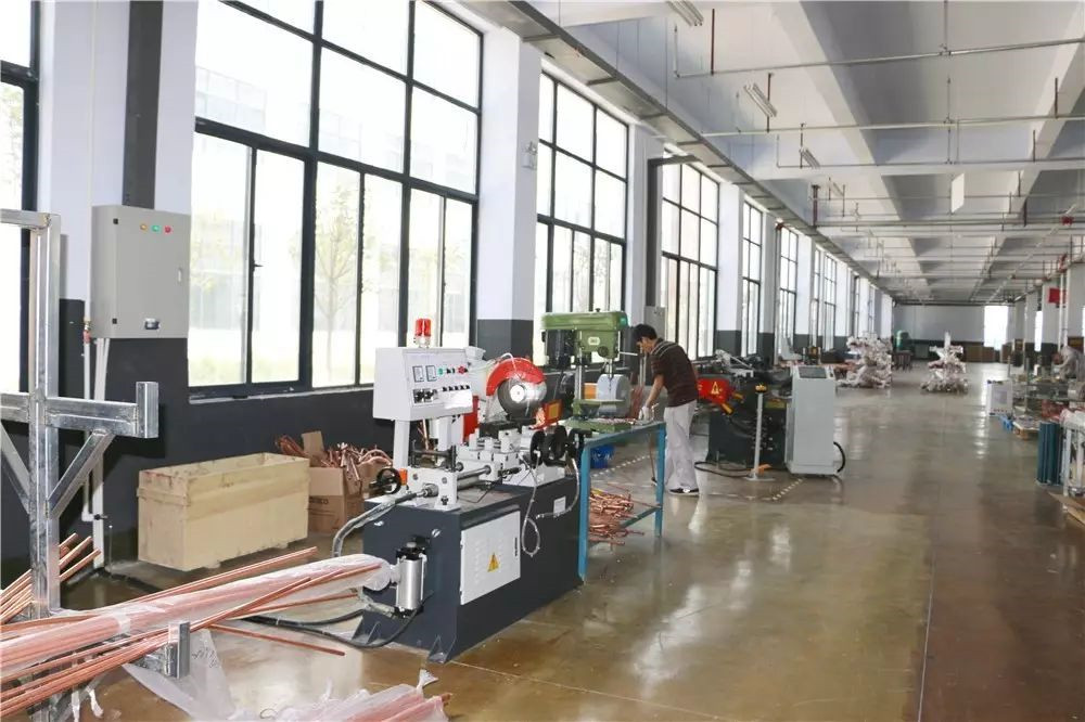 换热器车间及配管加工车间位于湿腾电器山东工厂园区19号楼的1楼。换热器车间拥有高速冲床、长U弯管机、全自动胀管机、翅片折弯机、检漏池、全自动弯管机、端口加工机、铜管下料机、手动胀管机等设备。