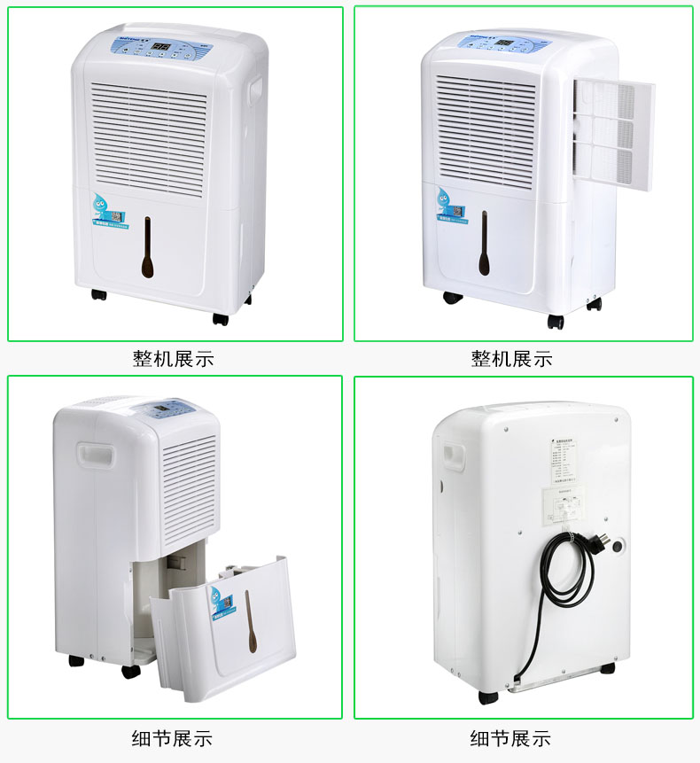 1、 整机结构合理:采用“智能风机延迟关闭”系统,全自动化微电脑控制。机器带湿度及温度显示,湿度从30%-90%任意设定,达到设定的湿度时会自动停机, 高于设定湿度时会自动开机除湿(设定好湿度后,机器会自动感应空气,潮湿时自动开机,空气干燥时自动关机,全自动化控)。