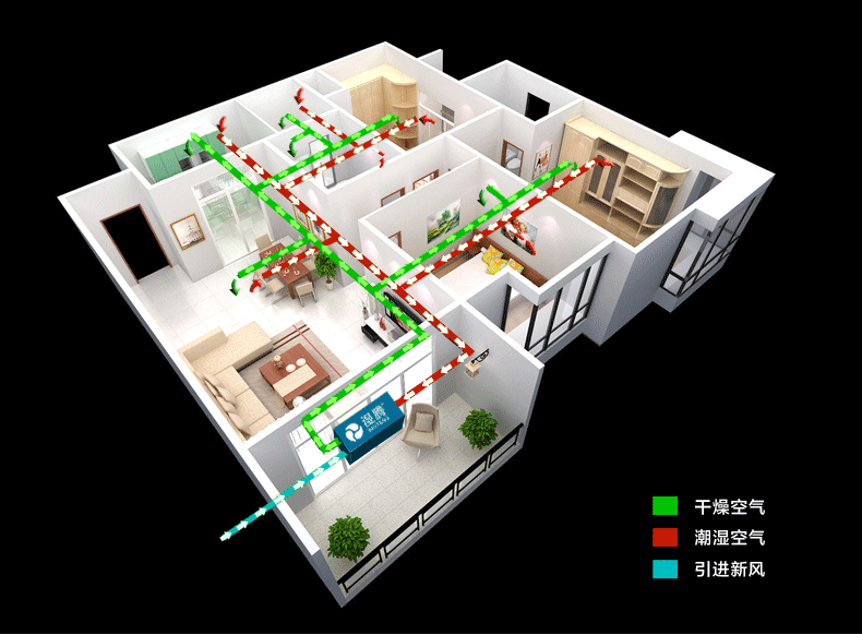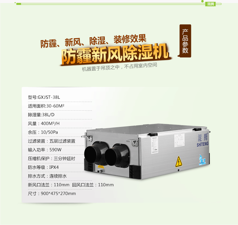 防霾中央新风除湿机 GXJST-38L室内送风管道