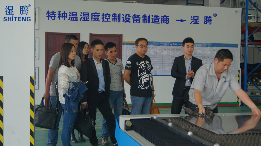 湿腾工作人员陪同各位来宾参观我司工厂 钣金车间