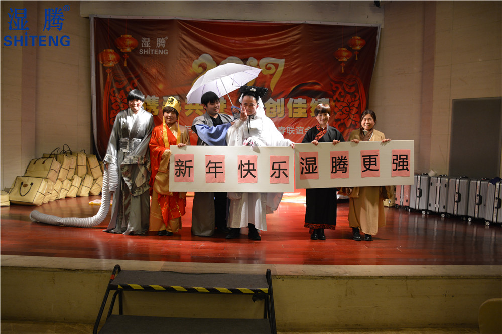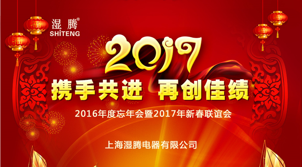 到此,新春联欢会已圆满落幕了。光辉灿烂的2016年过去了,充满希望和挑战的2017悄然来临。在过去的一年里我们微笑过、艰难过、也收获过,面对2017,我们满怀憧憬,激情澎湃,让我们一起用信心和勇气,昂首阔步,去书写“湿腾电器”一个更加灿烂的未来。