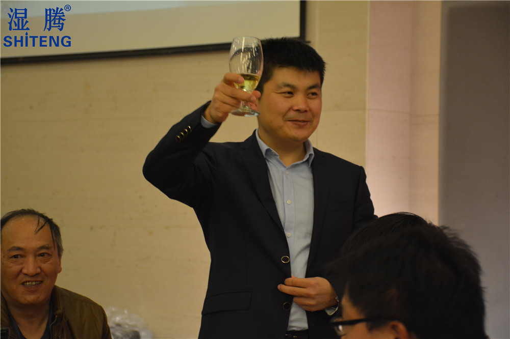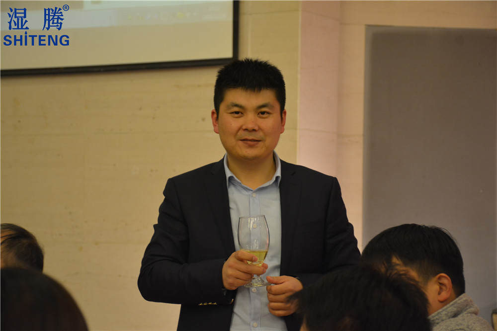 湿腾董事长执酒杯祝福全体员工