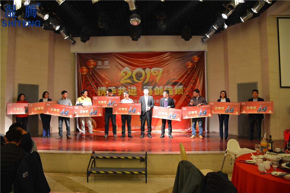 公司为答谢全体员工,还特此安排了幸运大抽奖环节。特等奖:8888元现金大红包,一等奖:苹果手机一部,二等奖苹果平板电脑2部,三等奖电动车10辆,四等奖羊毛被18份,五等奖高级旅行箱20个....随着一个个奖项的抽取,不断掀起年会的高潮。公司领导与员工亲情互动、激动人心的抽奖活动,让歌声、掌声、欢呼声一直在会场上荡漾。整场联欢会高潮迭起,呈现出“湿腾电器”这个大家庭的欢乐和谐。联欢会不仅给大家带来了欢声笑语,同时也让同事之间彼此的心更加贴近。