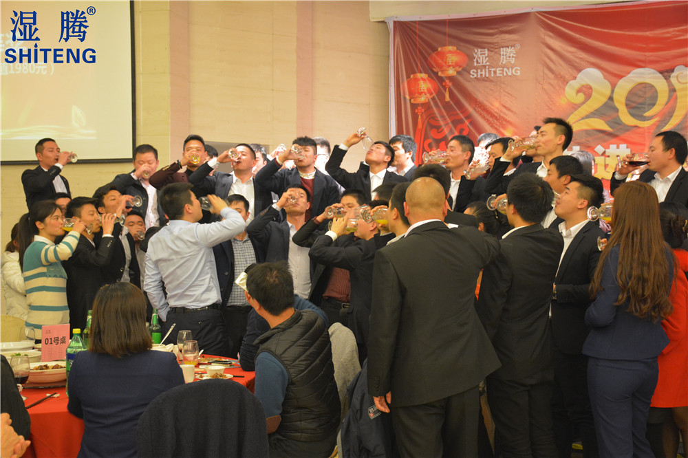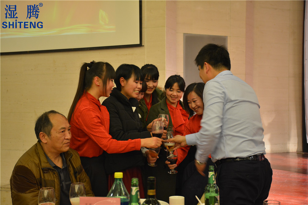 各岗位员工纷纷给董事长敬酒,表达对湿腾公司的祝福
